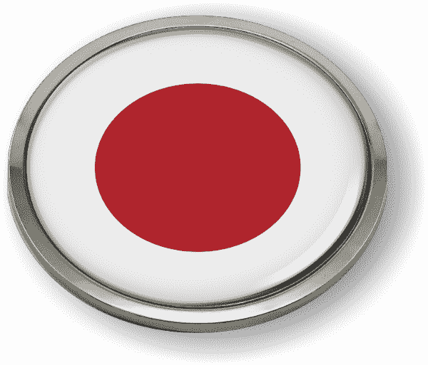 The diameter of the semi-flexible, plastic, and metal Japanese emblems is 3 3/8 inches. This slightly larger size enhances visibility and impact, making it suitable for those who want their emblem to stand out.